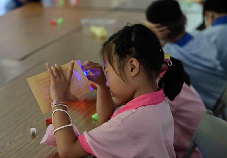 「這堂光影實驗課的內容非常豐富,課程設計也能激發孩子們自己動手找答案。但是如果有時間,能讓孩子們分小組討論,進一步小組交流,一定會激發孩子更多的想法與學習……」基隆市仁愛國小二年級導師郭惠玲,在一旁觀察班上孩子在這堂課中的互動與啟發。身為教育第一現場的老師,總是能不斷針對『學習的方式』改善與提升,找出最適合當下孩子的方法,以達到知識傳遞的目的。