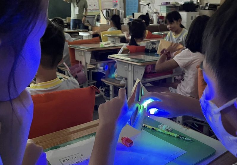 有學到很多顏色,還有學到怎麼不讓眼睛受傷,如果綠色跟藍色,用紅色照的話會變黑色。