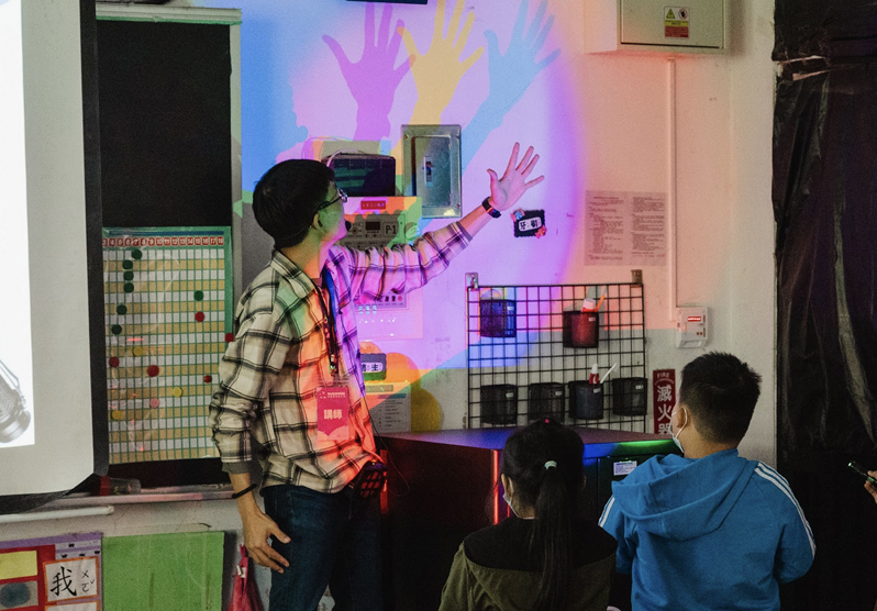 BenQ與親子天下攜手合作「光影實驗室」,由熱愛科學並長年致力於科普活動推廣的許兆芳老師設計課程,並以循序漸進的方式,引發孩子們的好奇心,再進一步進入主題知識的探索。「哇賽!」當毛毛蟲老師以紅、藍、綠,三原色光照射出『彩色』的影子時,全班孩子驚嘆不已,孩子們親眼見證原本以為不可能的事,相信實驗結果已深烙在腦海。