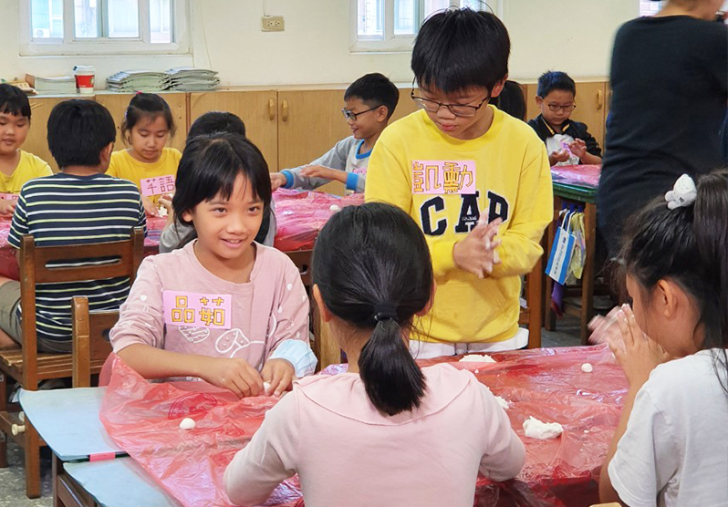 我們龍星國小在每一個年級都安排非常多的生活體驗課程,低年級的生活課程,會有客家的天穿日五色粄、客家麻糬活動,而中高年級則是有更深入了解文化的課程,另外學校逢年過節的時候也會有對應的節慶活動,例如:冬至搓湯圓…等。