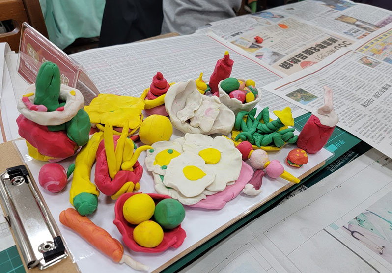 用黏土手作料理非常好玩,黏土還可以混色,其實什麼都做得出來,今天也學到透過食物,可以表達對家人滿滿的心意,真的很想跟家人分享。另外看到大家作的料理,有好多自己想不到的菜色,大家想吃的東西真的很不一樣,也很有創意呢!