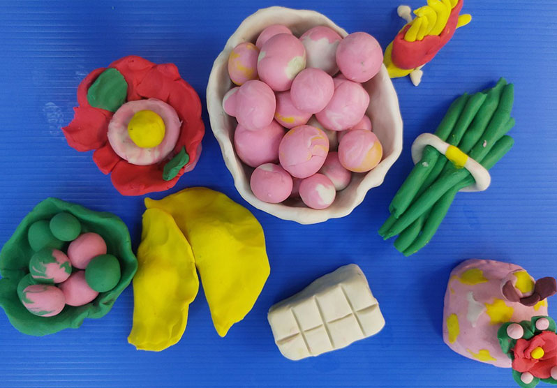 今天印象最深刻是老師用特別的黏土給大家玩,讓我們做冬至會吃到的東西,我做的是火鍋,材料有肉片、年糕、青菜和裝飾的東西,今天可以和同學一起合力完成一桌的料理,我覺得很開心;而且還了解冬至的意義,珍惜和家人在一起幸福相處的時光!