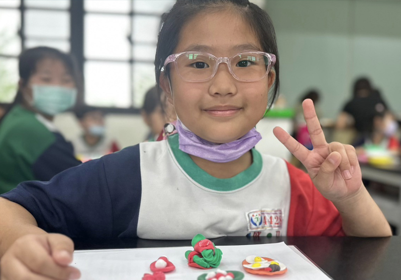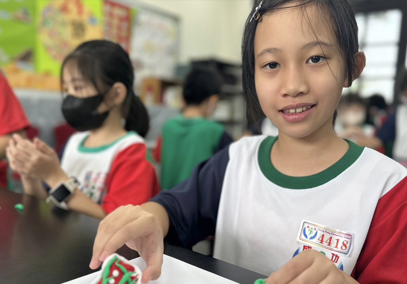 用黏土做料理是印象最深刻的部分,我今天做的是水餃,擠在碗裡面,就像爸爸媽媽和我一起擠在家裡面。然後,我覺得搶答遊戲最有趣,不但可以認識冬至知識,還可以得到分數,很有成就感。