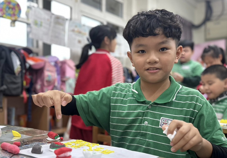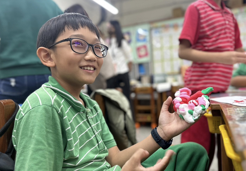 捏黏土印象最深刻,我今天做了一個小蛋糕、甜甜圈和冰淇淋,想跟家人分享,讓他們吃到有甜蜜蜜的感覺。