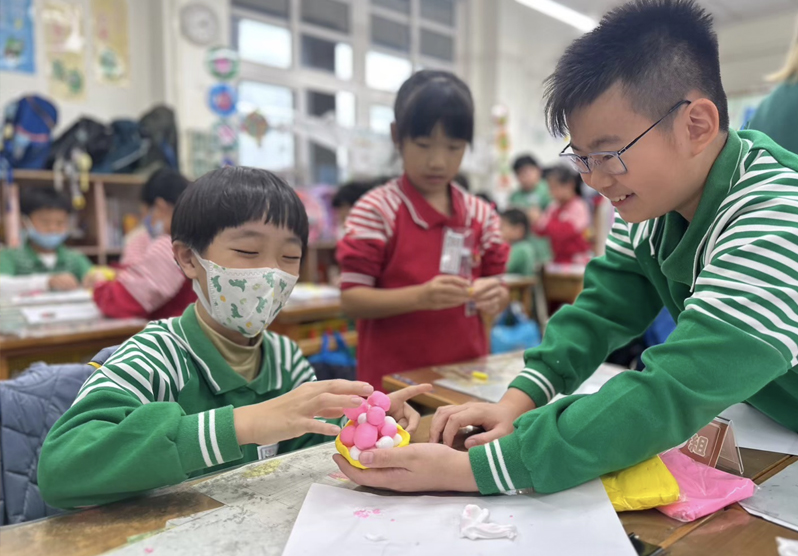 圖說:北市雙蓮國小同學一起完成冬至湯圓。